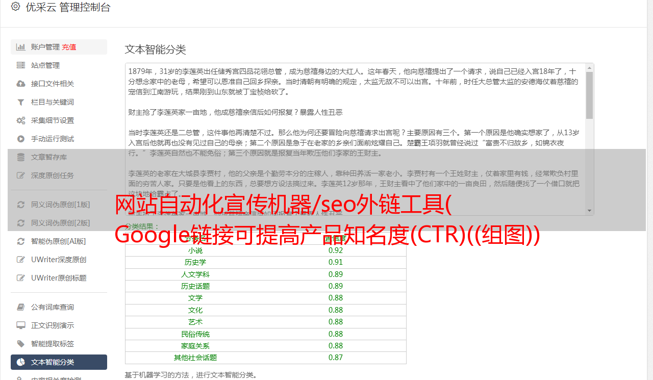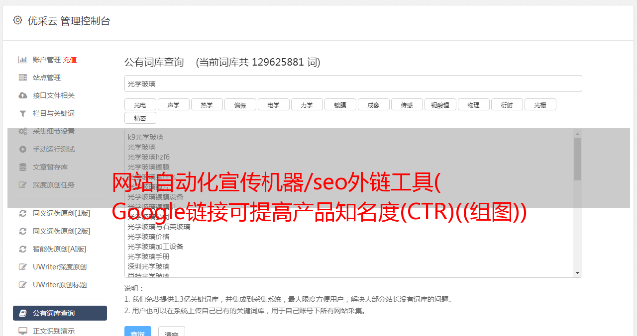 优采云 发布时间: 2021-10-28 18:10网站自动化宣传机器/seo外链工具(