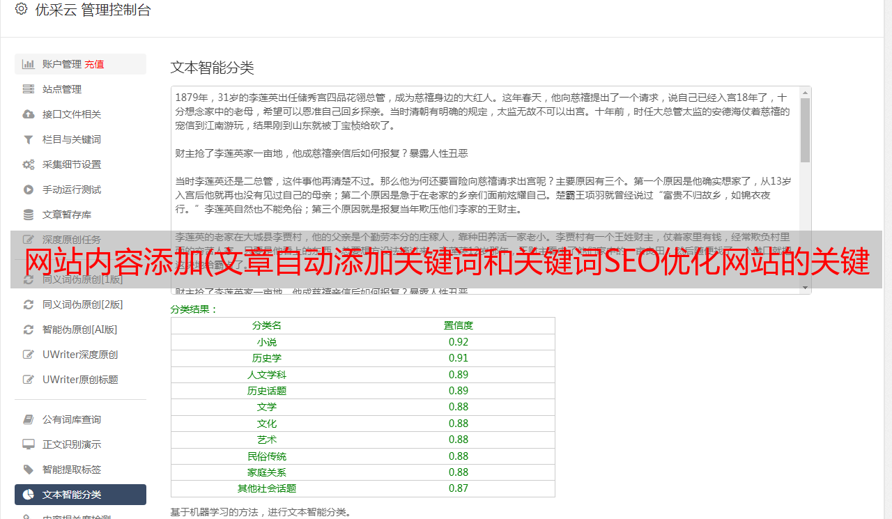 优采云 发布时间: 2021-10-28 20:08网站内容添加(文章自动添加关键词和关键词SEO优化网站的关键词描述关系)