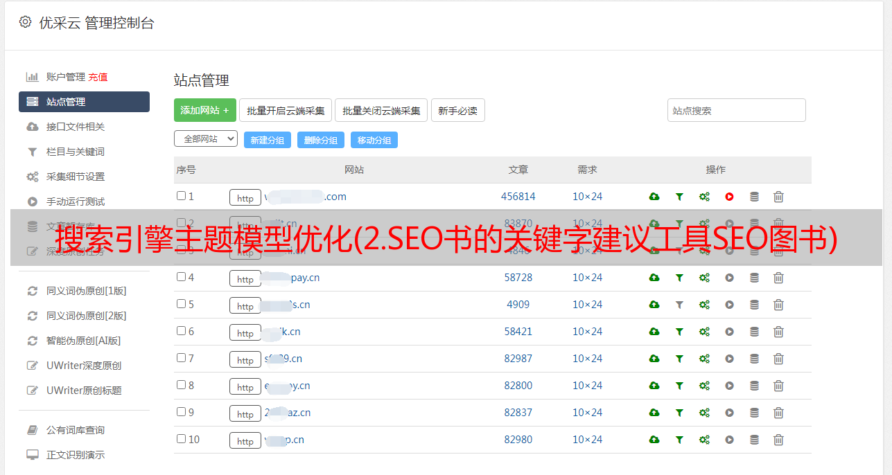 优采云 发布时间: 2021-10-28 23:01搜索引擎主题模型优化(2.SEO书的关键字建议工具SEO图书)