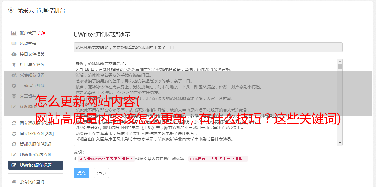 优采云 发布时间: 2021-10-29 13:05怎么更新网站内容(