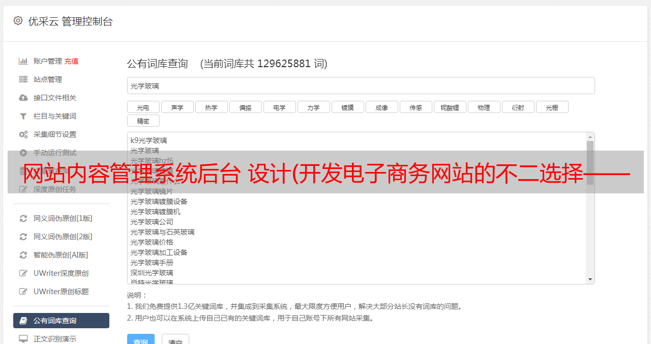 优采云 发布时间: 2021-10-29 16:06网站内容管理系统后台 设计(开发电子商务网站的不二选择——文静杜柯柯摘要)