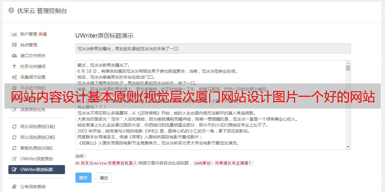 优采云 发布时间: 2021-10-29 23:03网站内容设计基本原则(视觉层次厦门网站设计图片一个好的网站需求很高)