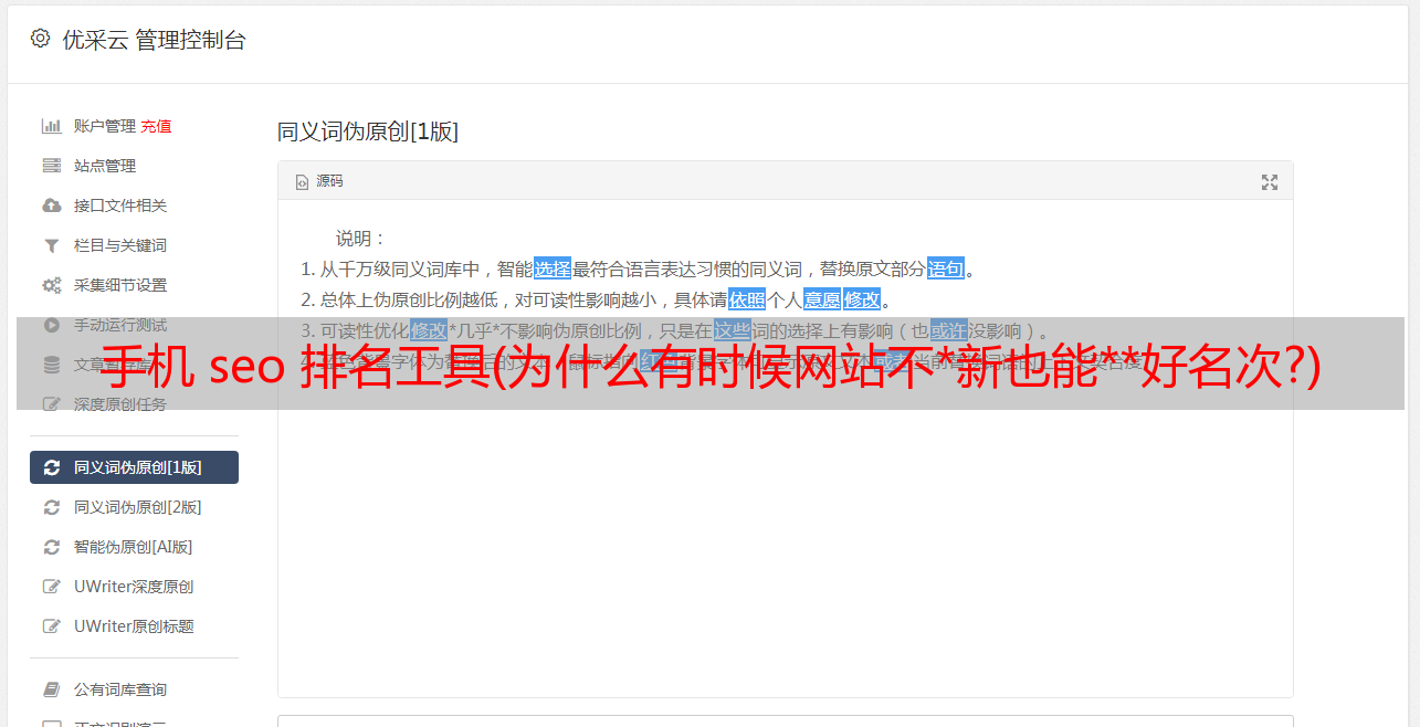 优采云 发布时间: 2021-10-30 07:18手机 seo 排名工具(为什么有时候网站不*新也能**好名次?)