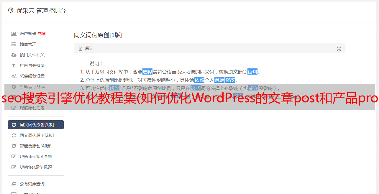 优采云 发布时间: 2021-10-30 09:11seo搜索引擎优化教程集(如何优化WordPress的文章post和产品product的标签吧!