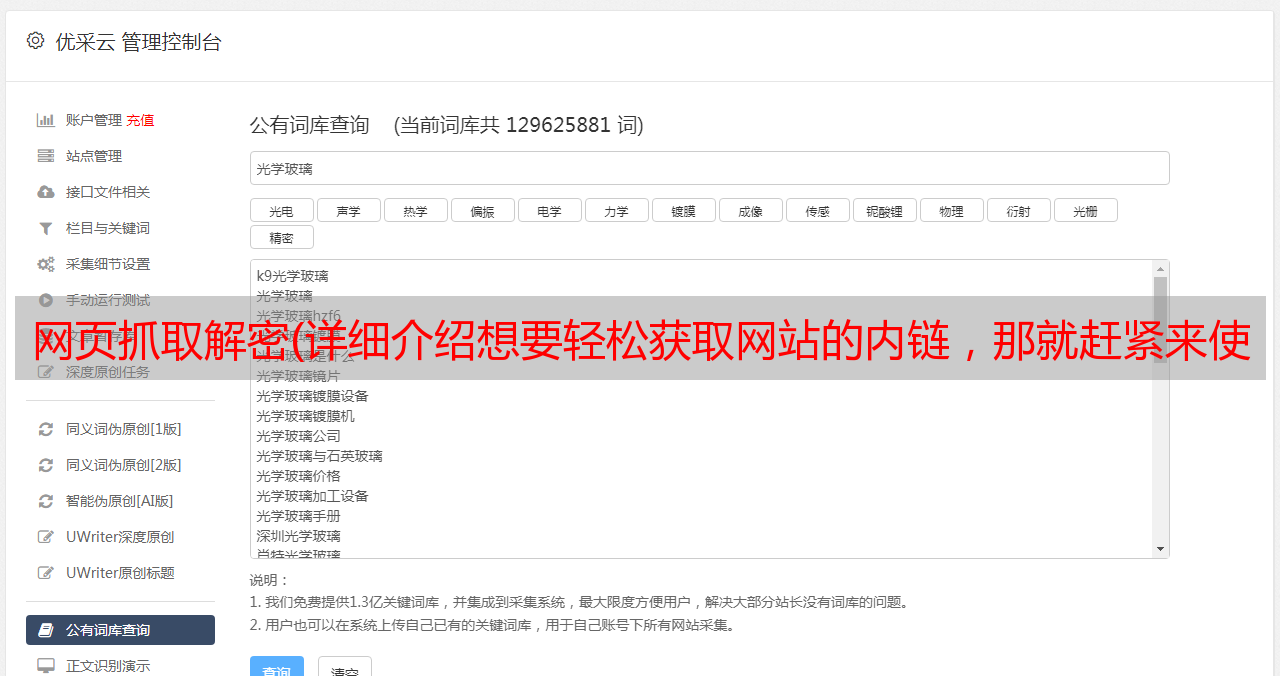 优采云 发布时间: 2021-10-30 19:10网页抓取解密(详细介绍想要轻松获取网站的内链,那就赶紧来使用)