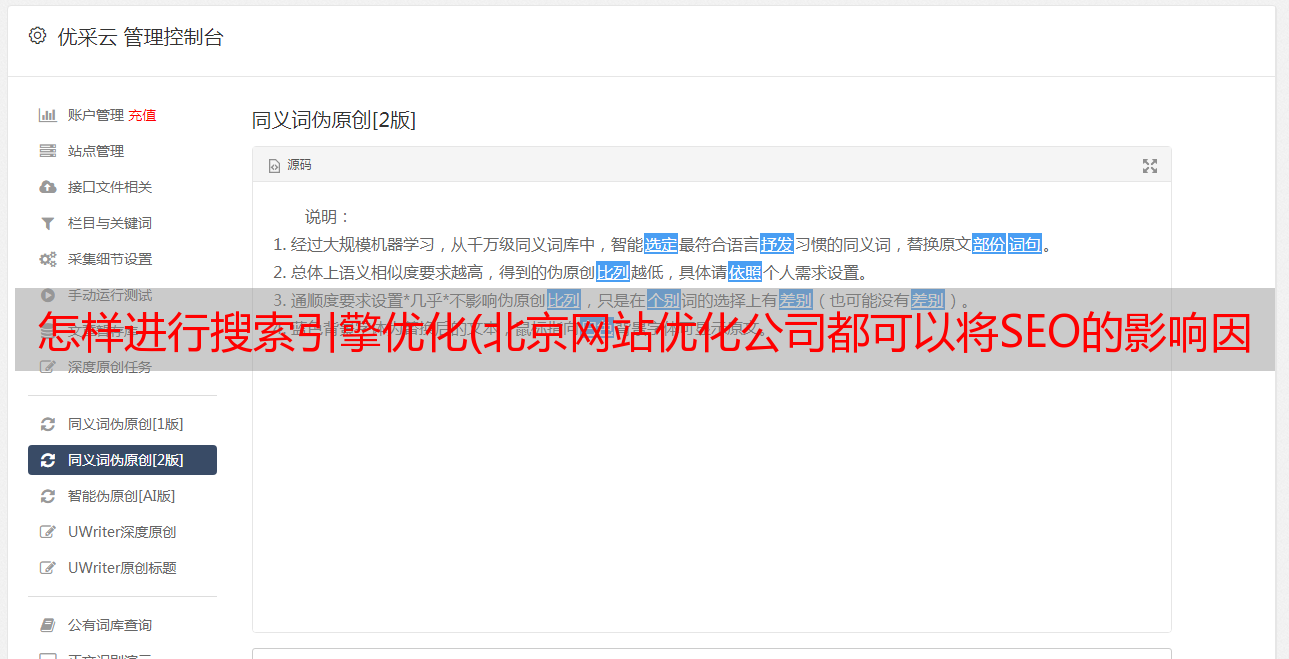 优采云 发布时间: 2021-10-31 03:08怎样进行搜索引擎优化(北京网站优化公司都可以将SEO的影响因素分为站内优化和站外优化)