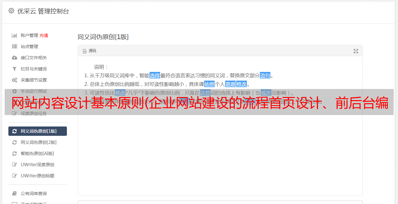 优采云 发布时间: 2021-10-31 16:08网站内容设计基本原则(企业网站建设的流程首页设计、前后台编码、测试和验收确认工作)