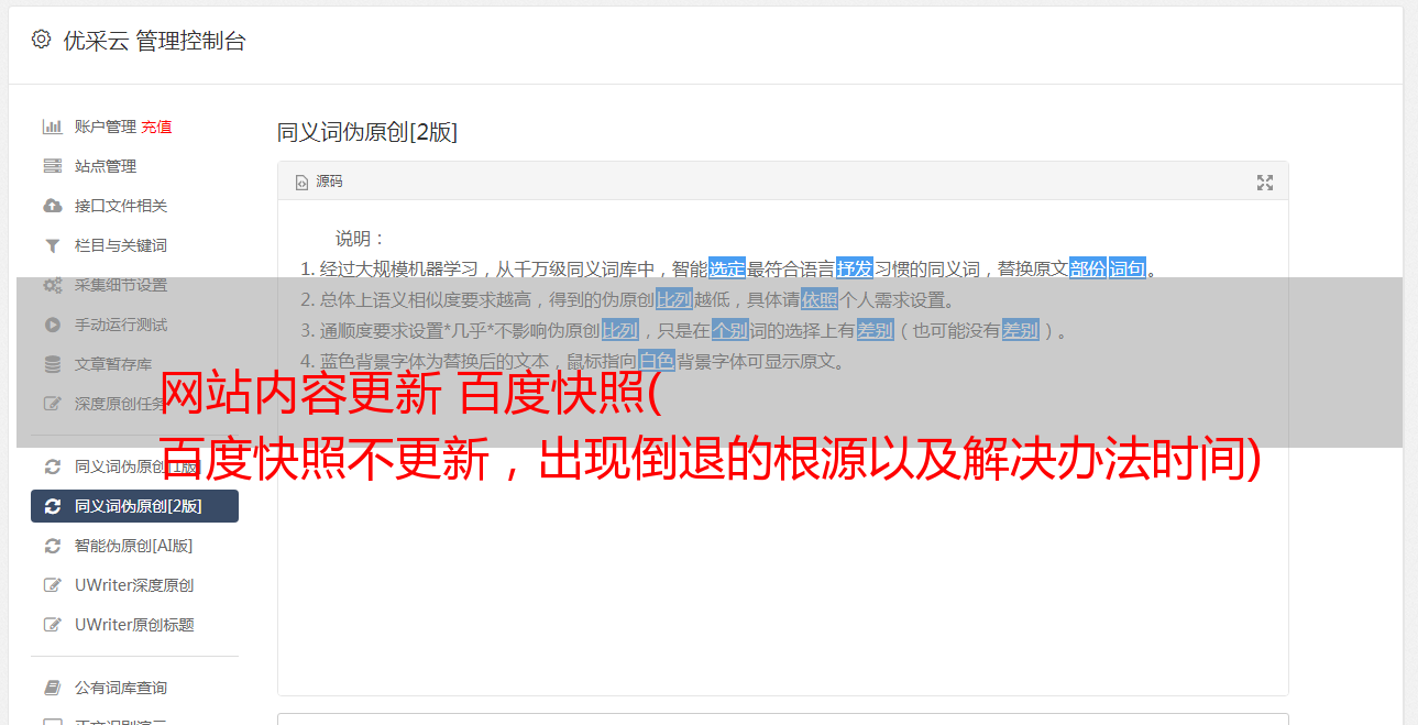 百度快照不更新,出现倒退的根源以及解决办法时间)