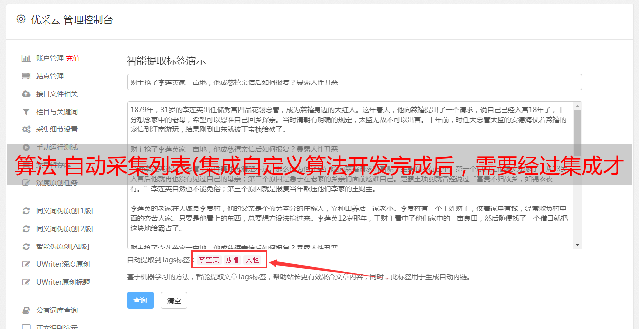 优采云 发布时间: 2021-10-31 23:05算法 自动采集列表(集成自定义算法开发完成后,需要经过集成才能正式上线)