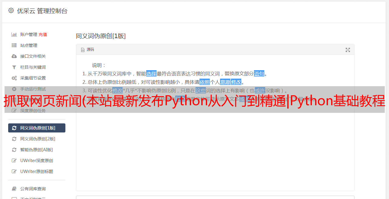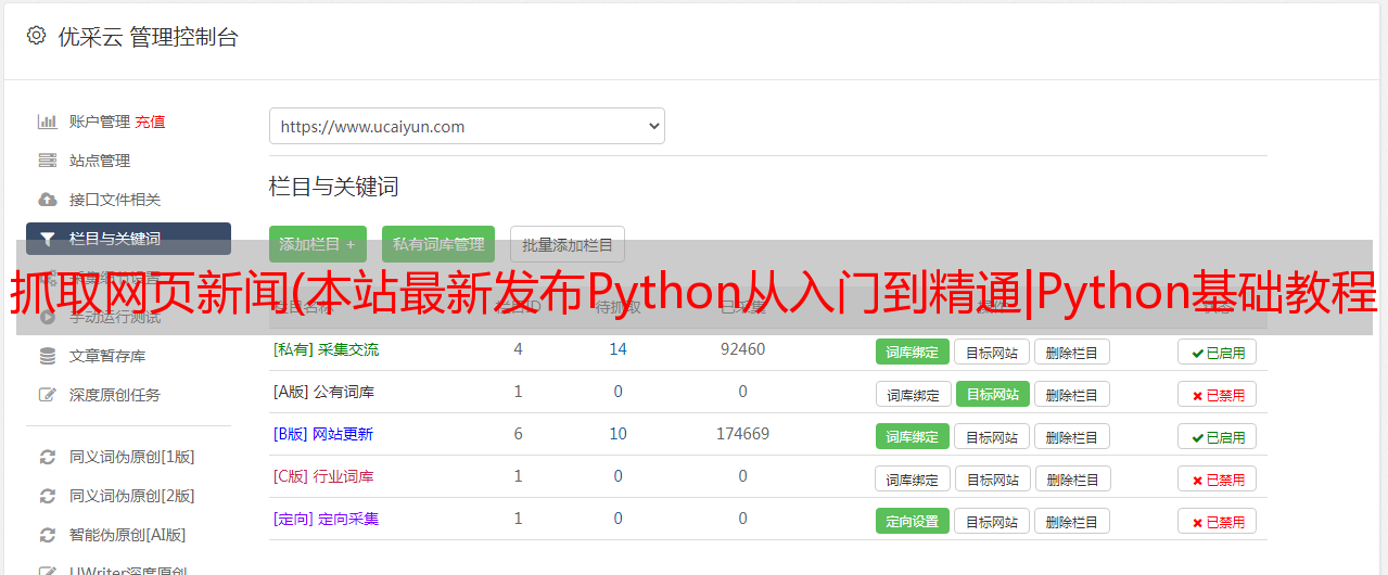 优采云 发布时间: 2021-11-01 08:09抓取网页新闻(本站最新发布Python从入门到精通|Python基础教程试听地址