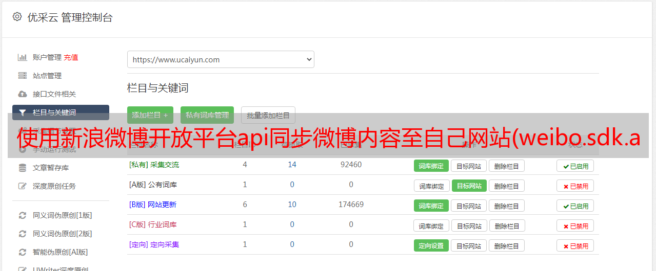 优采云 发布时间: 2021-11-01 20:07使用新浪微博开放平台api同步微博内容至自己网站(weibo.sdk.android--这个是sina微博微博登陆认证的源码)