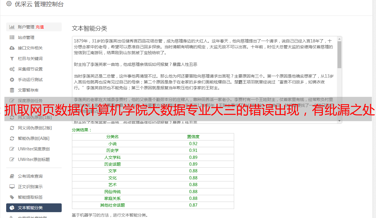 优采云 发布时间: 2021-11-01 23:01c 抓取网页数据(计算机学院大数据专业大三的错误出现,有纰漏之处!