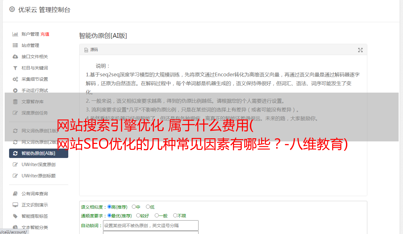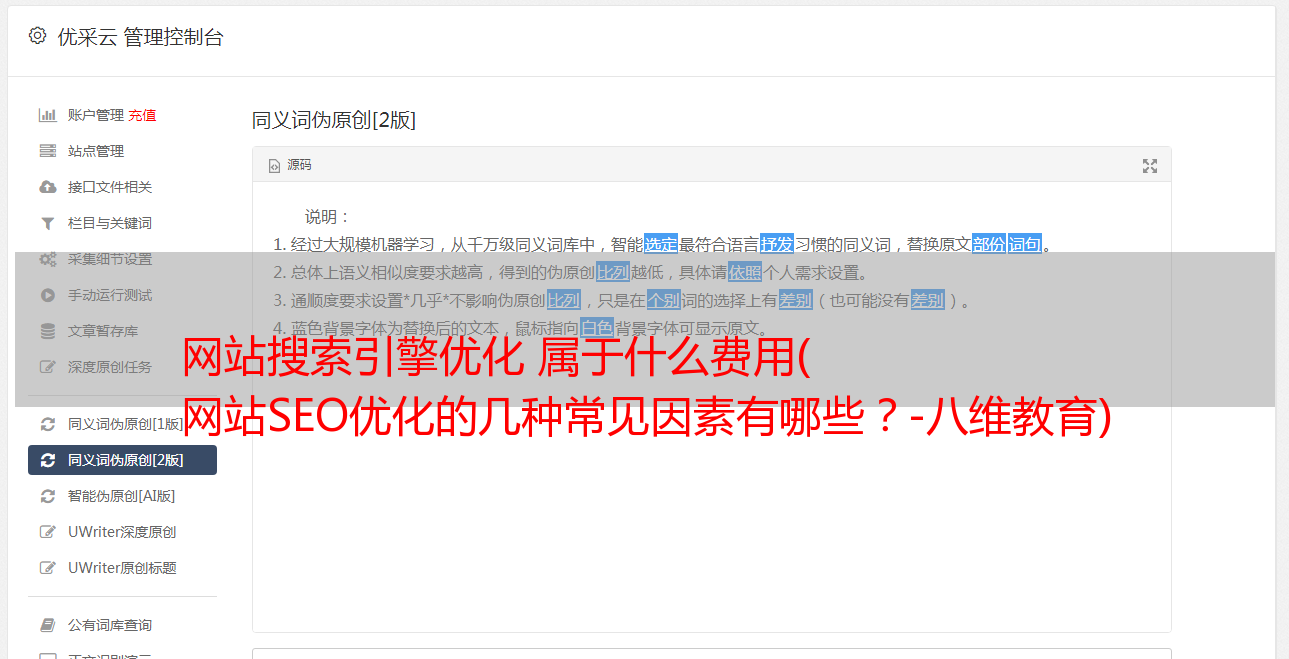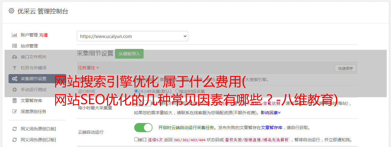 优采云 发布时间: 2021-11-02 00:06网站搜索引擎优化 属于什么费用(