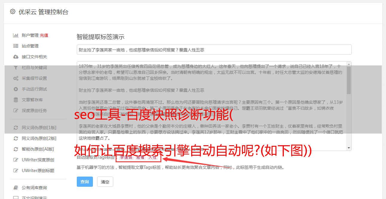 优采云 发布时间: 2021-11-02 05:04seo工具-百度快照诊断功能(