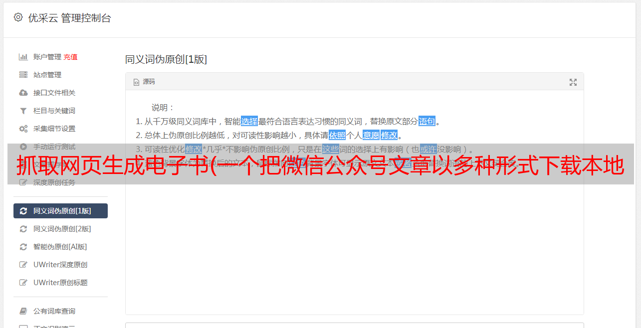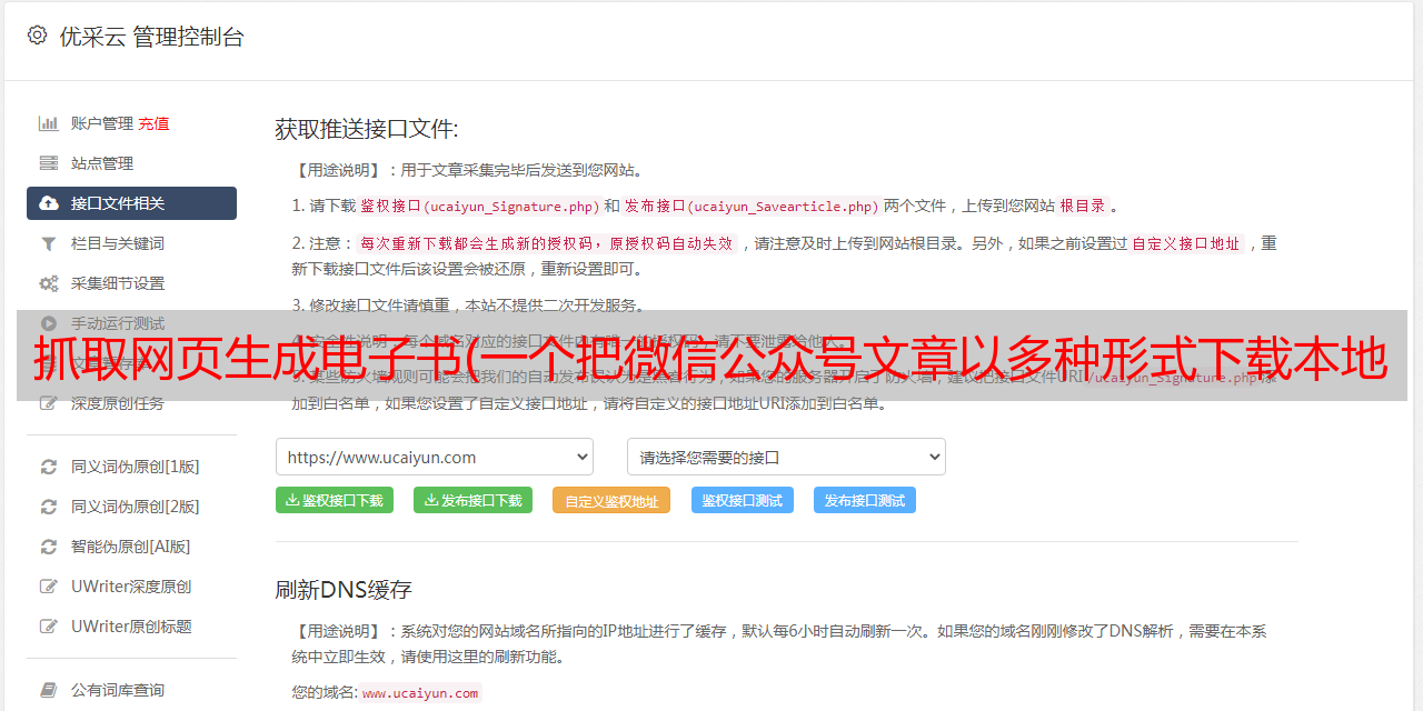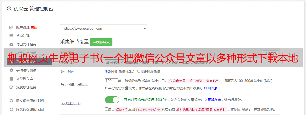 我之前分享过几个免费软件。我为什么要谈论付费软件?首先,付费软件相对稳定,功能多。下载转换速度比较快。这取决于每个人的需求。收费标准:日卡:12元卡:39.9元终身卡:299.9元1、一键采集微信公众号全群发文章 @>,还可以通过关键词搜索所有与文章相关的公众号,支持按时间段采集,内置强大的本地数据库,所有搜索到的文章都会被本地自动永久保存;2、文章 批量导出Pdf、Word、Excel、txt和Html格式,下载音视频文件、图片和文章消息,并且导出文档的版式可以与原文保持一致,也可以导入链接下载;(可以选择只下载文章图片)3、可以实时查看文章阅读和留言,可以一键复制文章的内容;4、内置开放接口,可以一键同步所有微信文章给自己网站,保证微信图片正常显示;