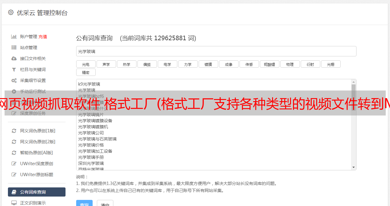 优采云 发布时间: 2021-11-02 13:15网页视频抓取软件 格式工厂(格式工厂支持各种类型的视频文件转到MP4/3/WMA)