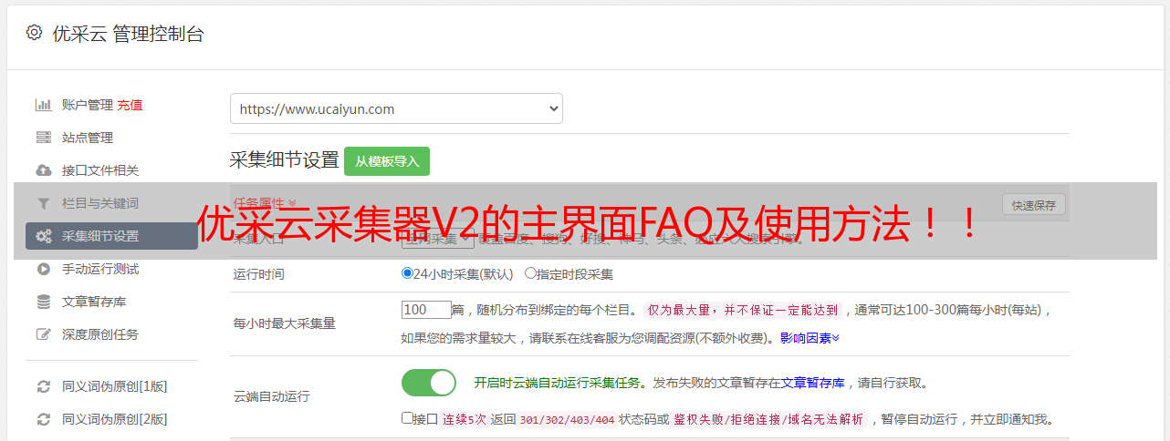 优采云 发布时间: 2021-03-22 21:19优采云采集器V2的主界面FAQ及使用方法!!