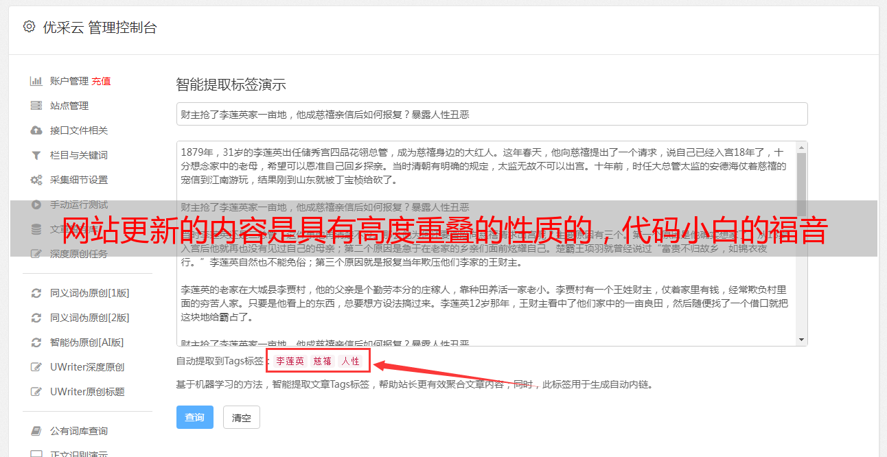 优采云 发布时间: 2021-03-22 22:02网站更新的内容是具有高度重叠的性质的,代码小白的福音