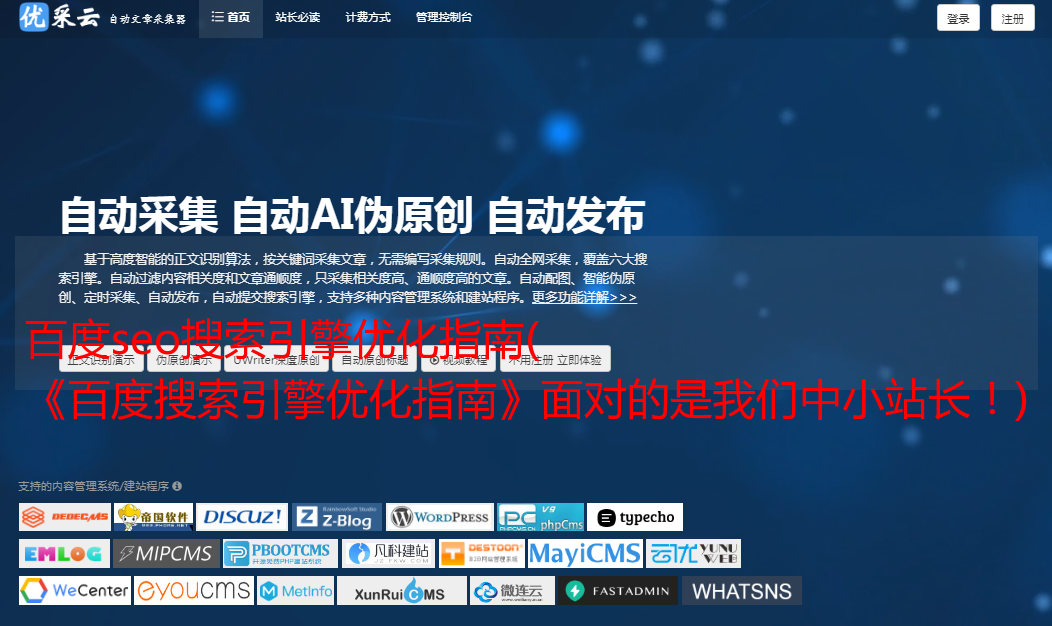 优采云 发布时间: 2021-11-03 01:17百度seo搜索引擎优化指南(
