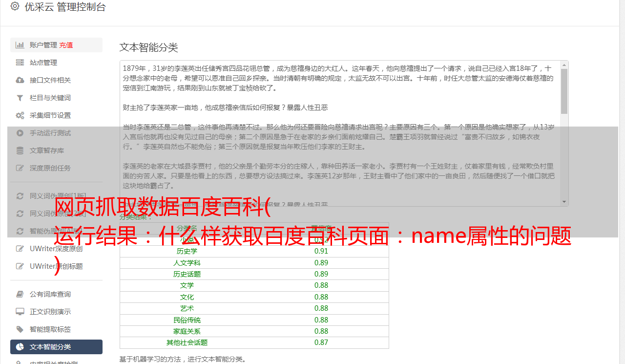 优采云 发布时间: 2021-11-03 02:09网页抓取数据百度百科(
