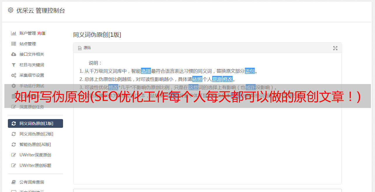 优采云 发布时间: 2021-11-03 03:15如何写伪原创(SEO优化工作每个人每天都可以做的原创文章!)