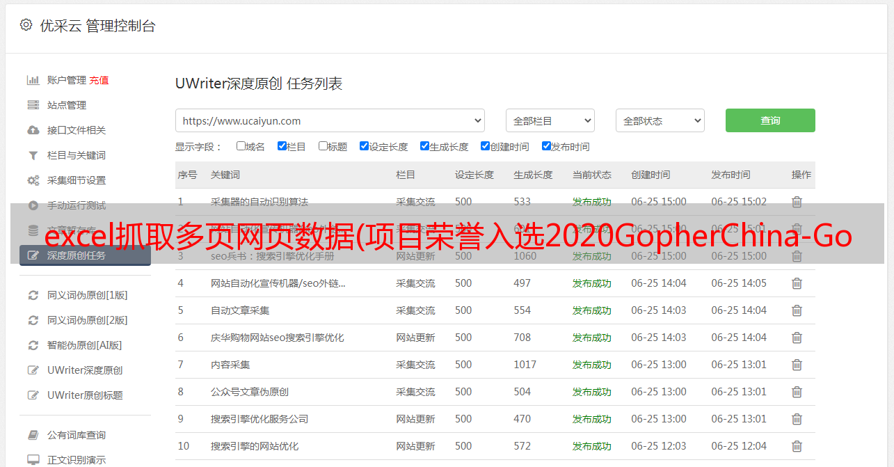 优采云 发布时间: 2021-11-03 18:00excel抓取多页网页数据(项目荣誉入选2020GopherChina-Go领域明星开源项目(GSP)入选)