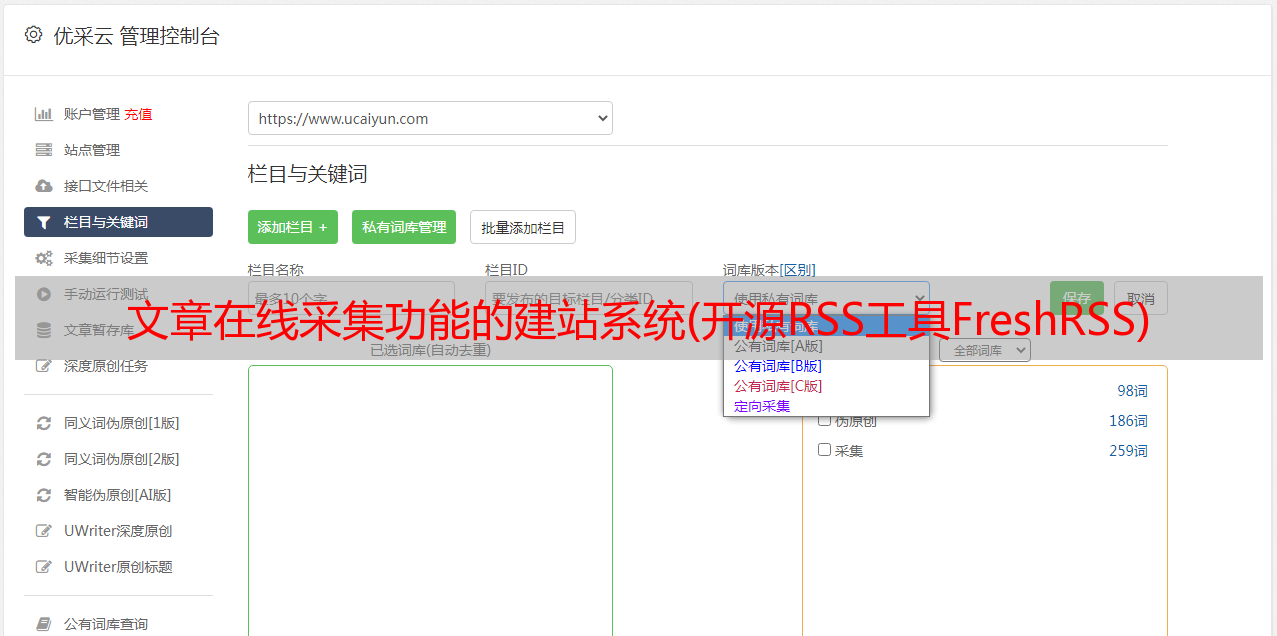 优采云 发布时间: 2021-11-03 20:07文章在线采集功能的建站系统(开源RSS工具FreshRSS)