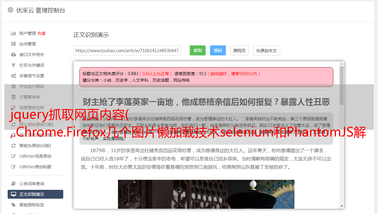 jquery抓取网页内容( ,.Chrome.Firefox几个图片懒加载技术selenium和PhantomJS解析)