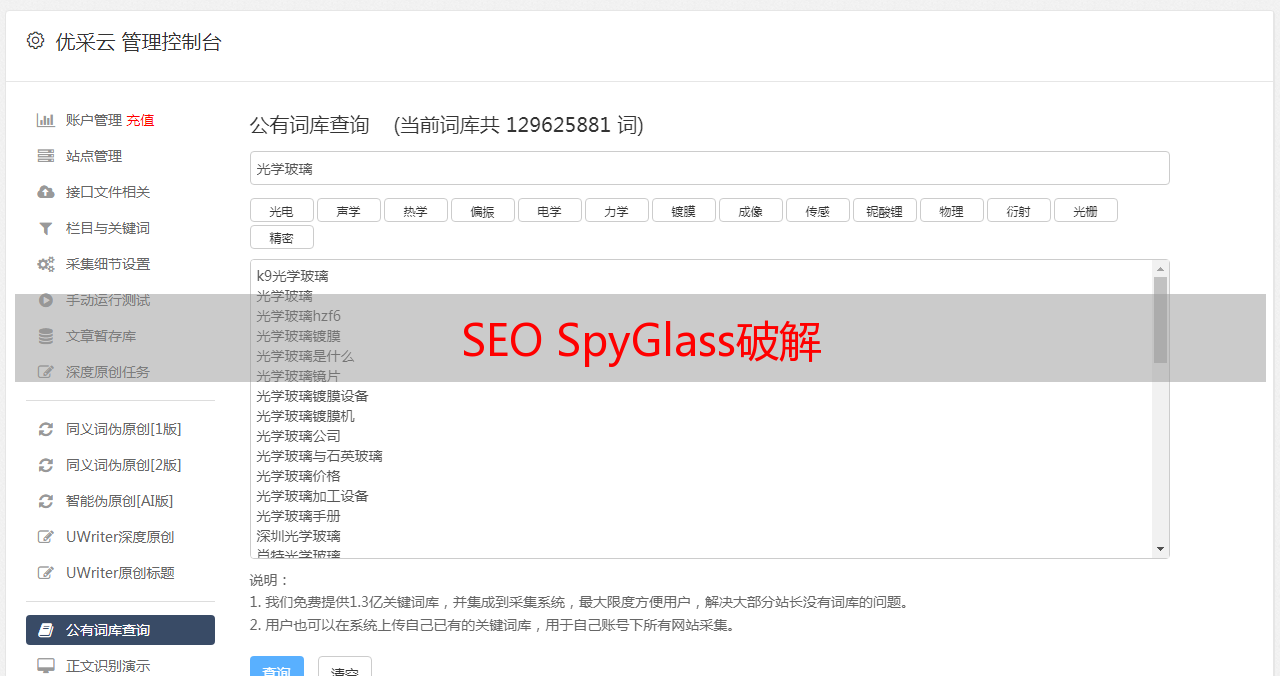 SEO SpyGlass是一款相当全面的站长剖析、辅助工具。它根据网站连接、网站权重、网站收录情况、SEO综合剖析四大功能为一体,为用户对网站进行评估,并提出一些对网站优化的相关建议。破解版的功能除了限于上述所述的功能,它能够够为你剖析竞争对手的网站,功能太强悍的一款网站seo剖析工具。破解版一共包含4个主要部份,分别是:“Link Assistant”、“Rank Tracker”、“SEO SpyGlass”和“WebSite Auditor”。最强悍的就是优秀剖析功能,包括对竞争网站的剖析和自身网站的剖析,而且是按照不同国家的搜索引擎来进行具体剖析的。输入你的竞争网站地址和想要查询的关键词,并选择一个或几个主要使用的搜索引擎,就会手动进行剖析了。分析过程可能比较长,不过值得的,因为它最后生成的报告不会使你沮丧的。SEO SpyGlass会对查询网站下的所有页面进行剖析,包括网站的 Alexa排名、每个具体页面在搜索引擎中的权重、关键字含量、友情链接、反向链接…等等。