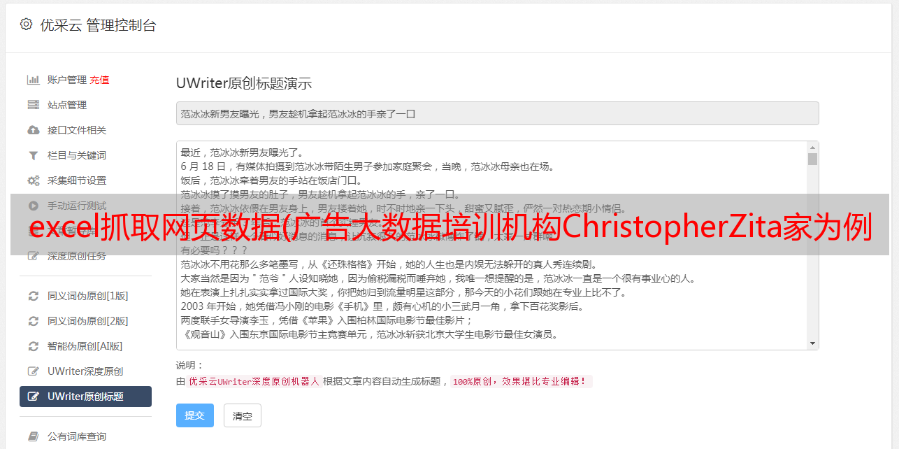 优采云 发布时间: 2021-11-04 09:02excel抓取网页数据(广告大数据培训机构ChristopherZita家为例大)