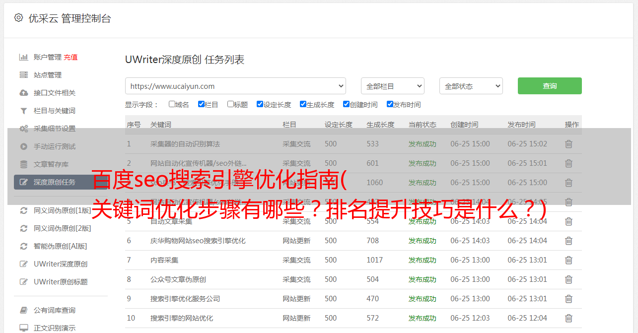 优采云 发布时间: 2021-11-04 16:02百度seo搜索引擎优化指南(
