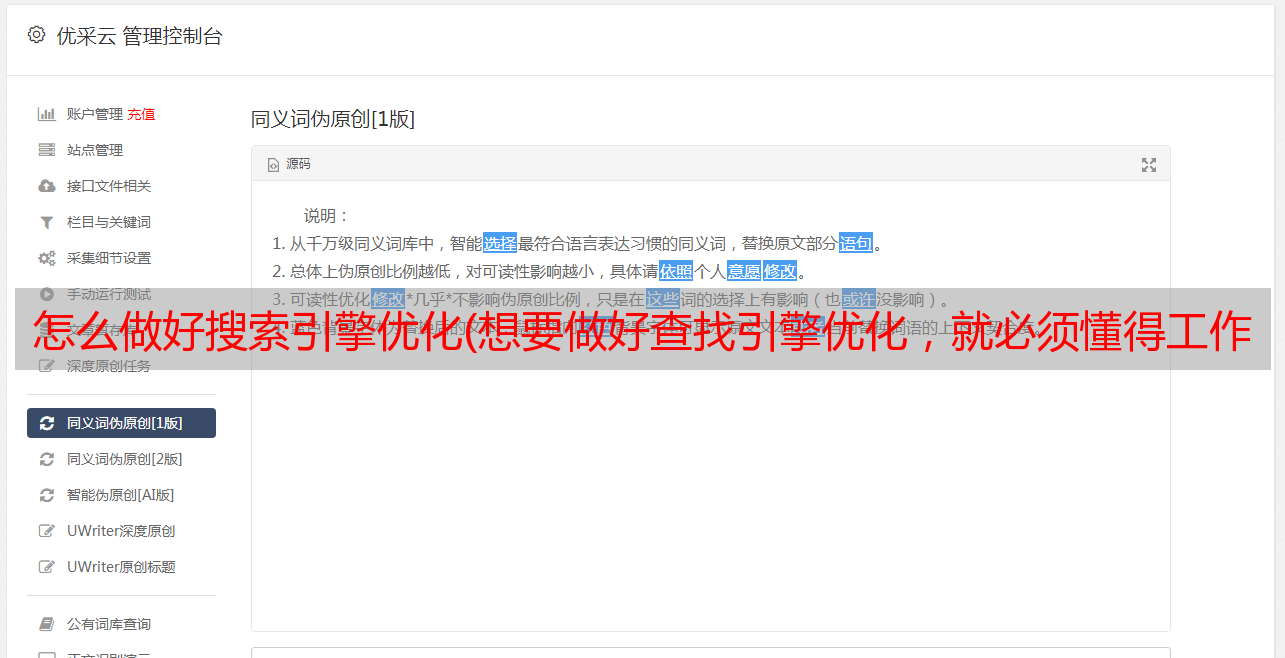 优采云 发布时间: 2021-11-04 18:16怎么做好搜索引擎优化(想要做好查找引擎优化,就必须懂得工作方法。。)