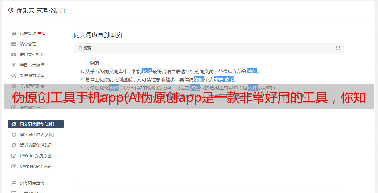 优采云 发布时间: 2021-11-05 00:10伪原创工具手机app(AI伪原创app是一款非常好用的工具,你知道吗?)