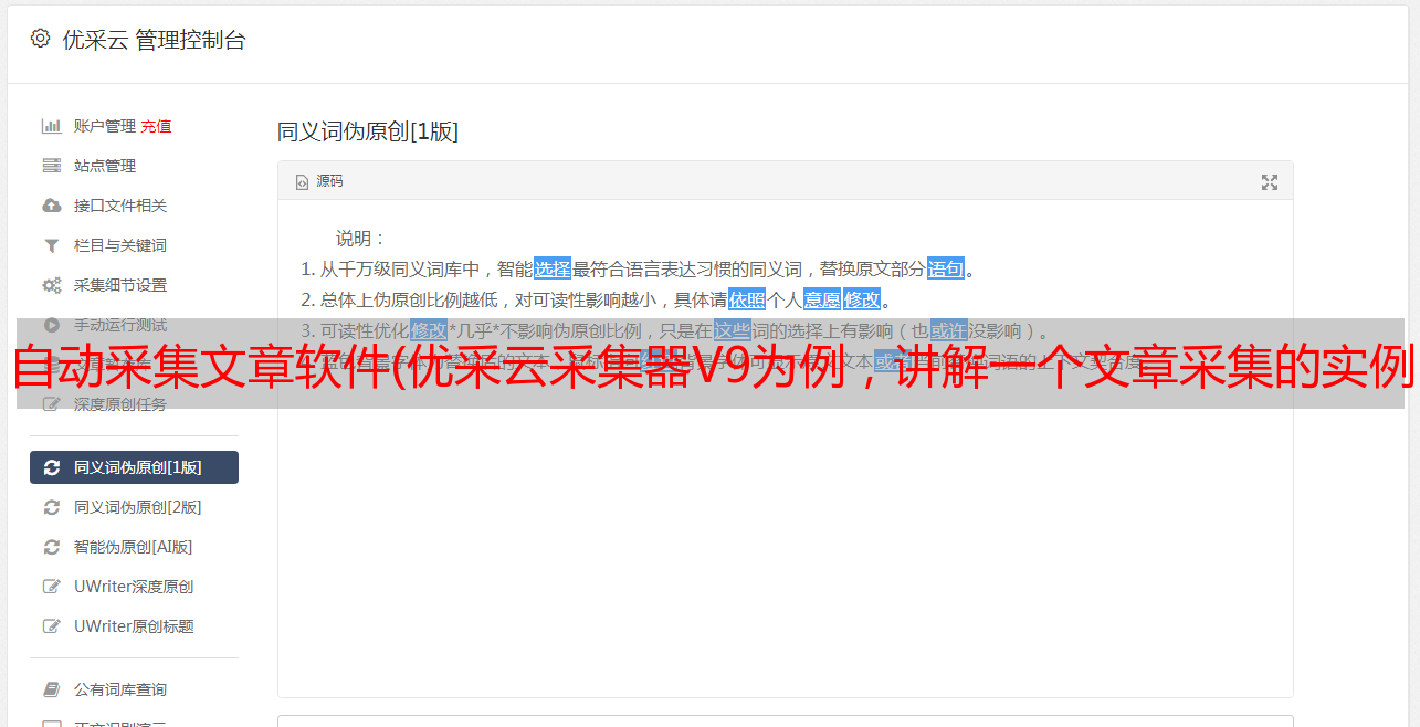 这种采集比较容易与一些数字化的、不规则的数据进行比较。这里以网页爬虫工具优采云采集器V9为例,讲解一个文章采集的例子供大家学习。