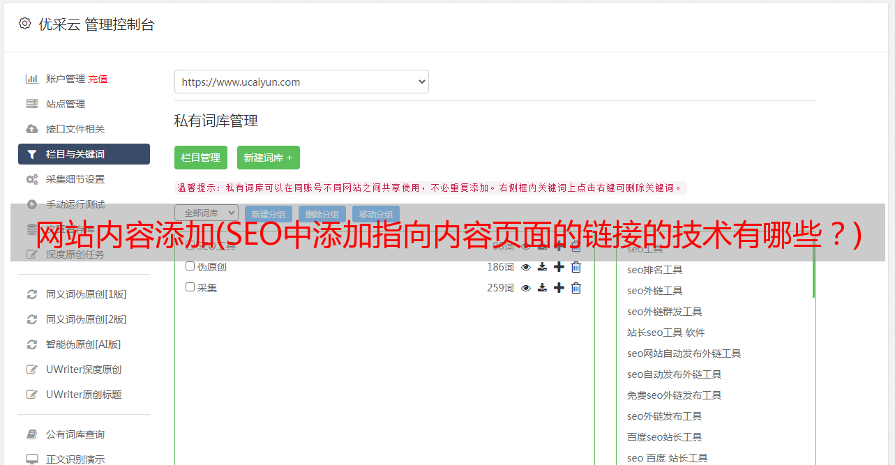优采云 发布时间: 2021-11-05 06:25网站内容添加(SEO中添加指向内容页面的链接的技术有哪些?)