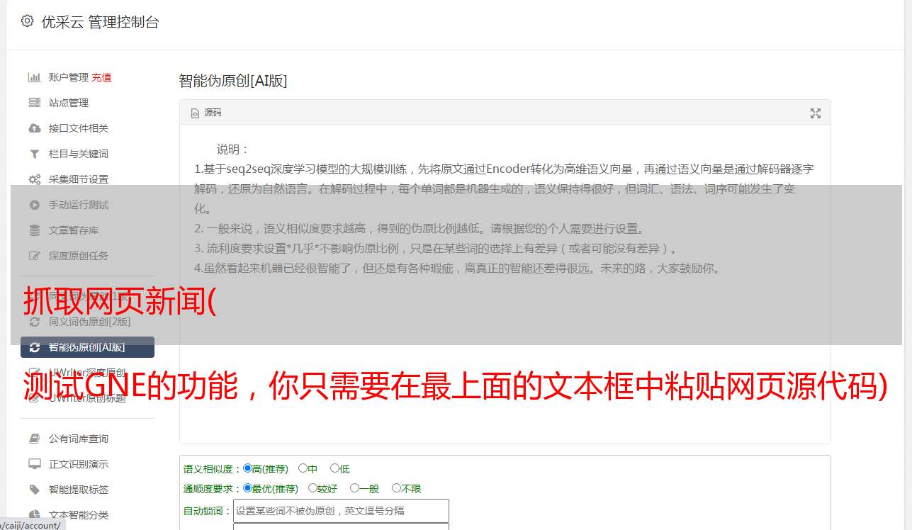 抓取网页新闻( 测试GNE的功能,你只需要在最上面的文本框中粘贴网页源代码)