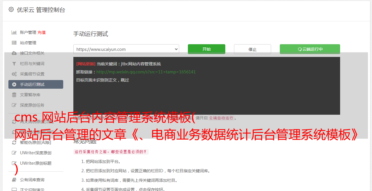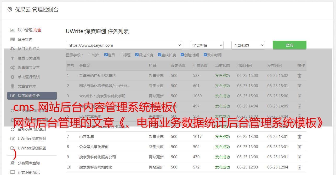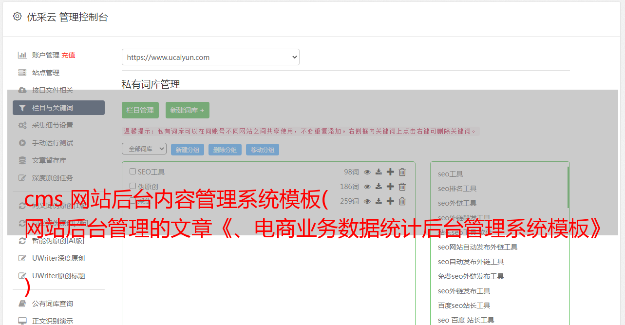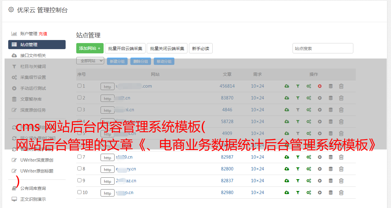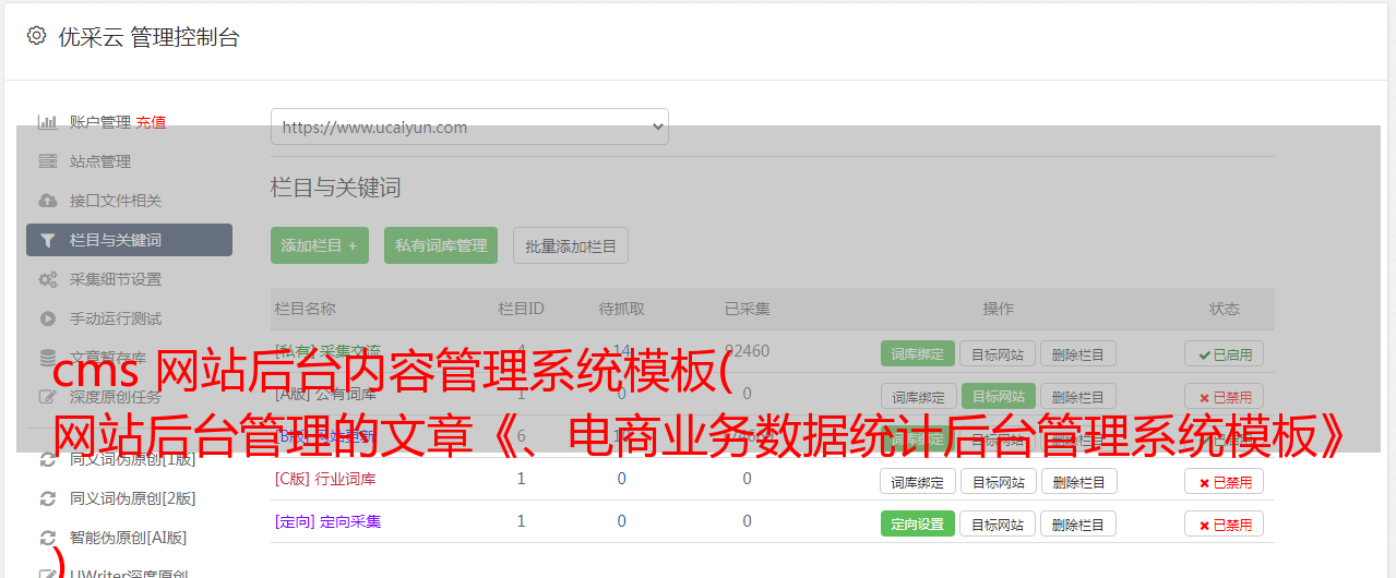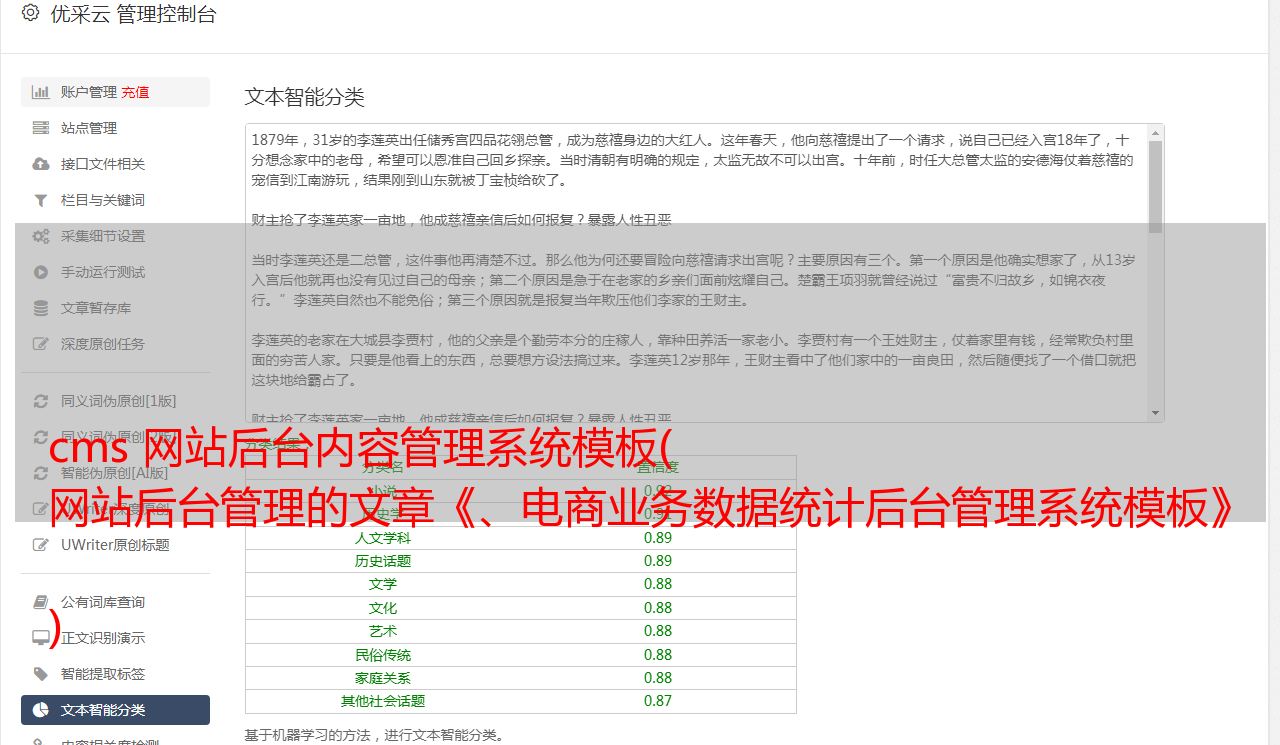 cms 网站后台内容管理系统模板( 网站后台管理的文章《、电商业务数据统计后台管理系统模板》 )