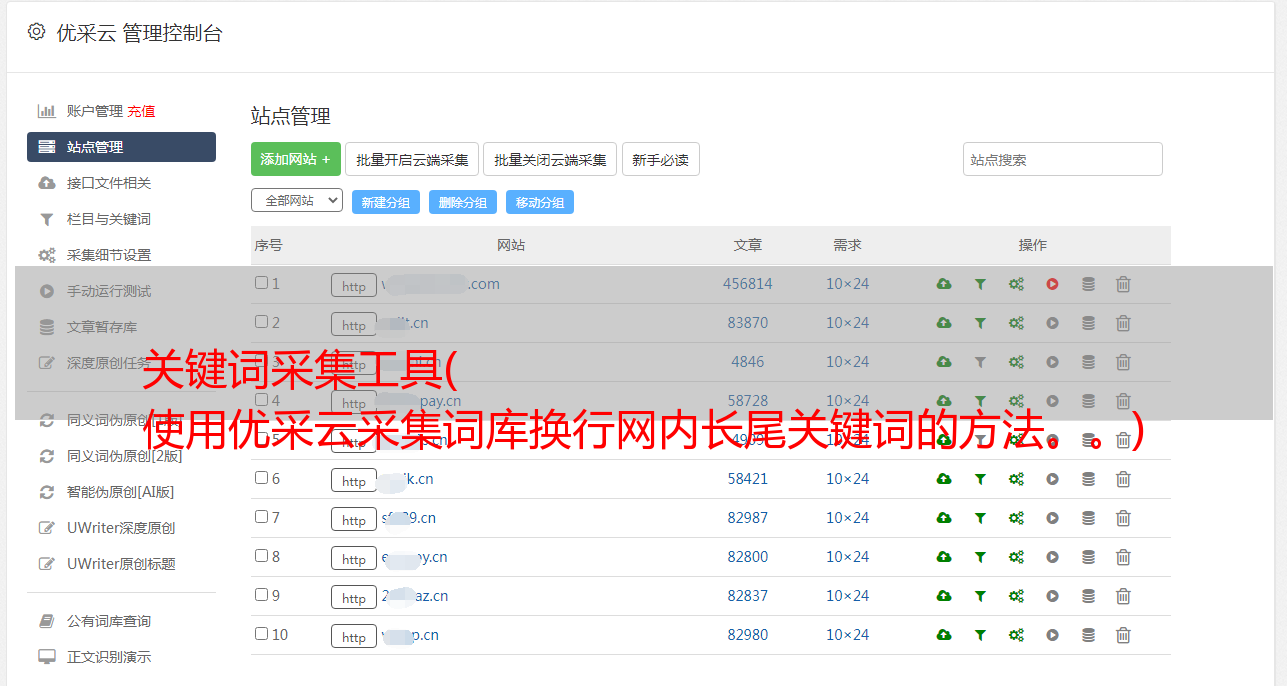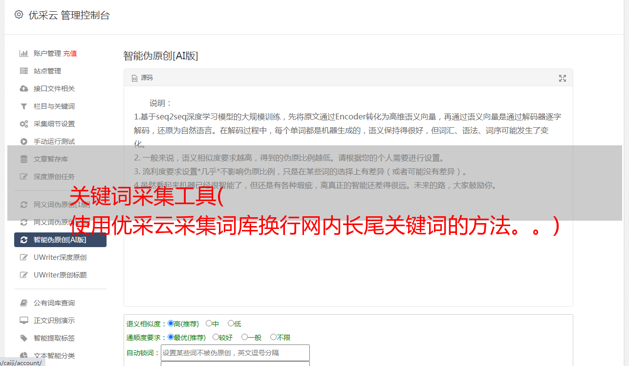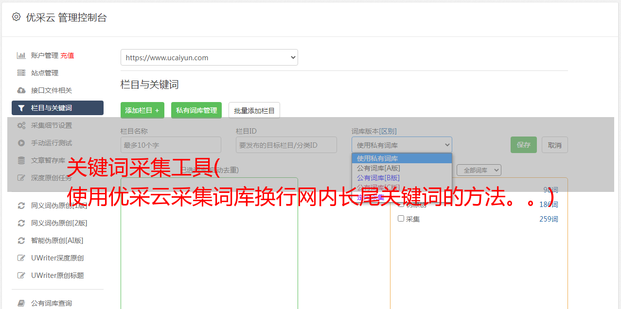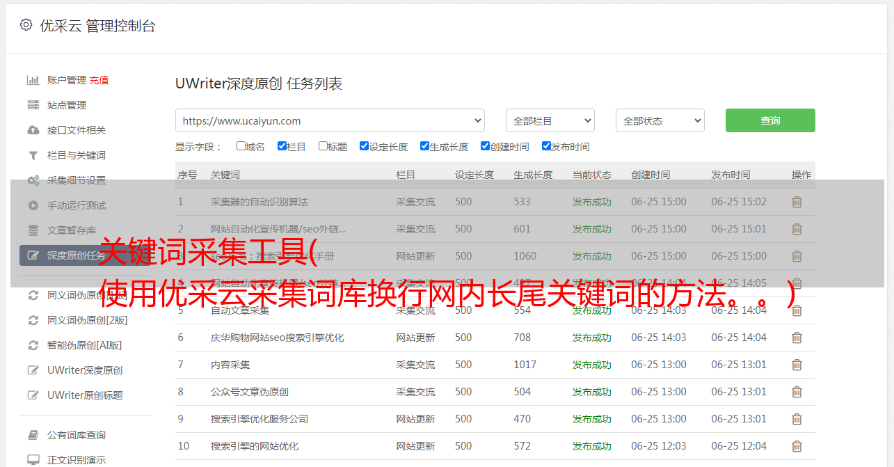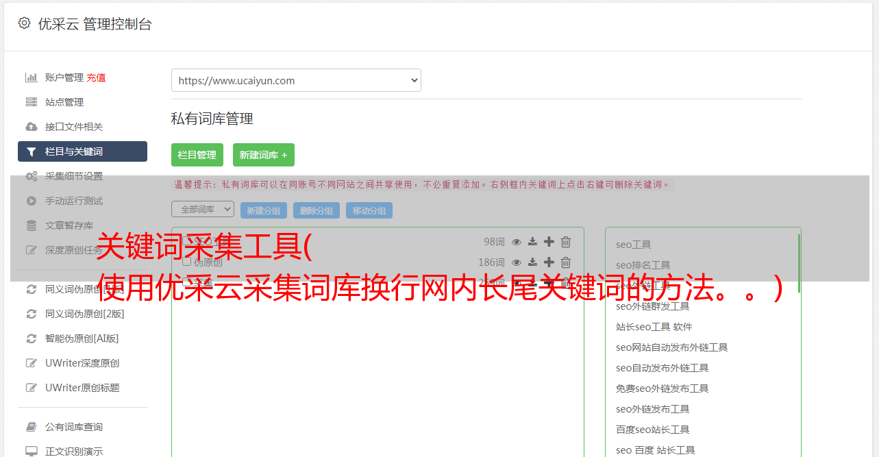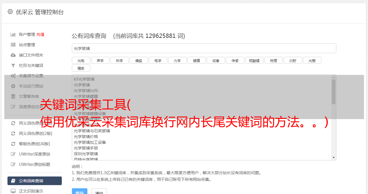 关键词采集工具( 使用优采云采集词库换行网内长尾关键词的方法。。)