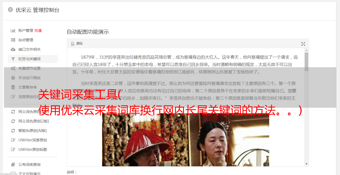 本文介绍在词库网络中使用优采云采集Long Tail关键词的方法。长尾关键词挖矿对于站长来说是一项非常重要的技能。尾巴在长尾理论中的作用不容忽视。在搜索引擎营销中使用长尾理论来制定关键词策略是非常有效的。