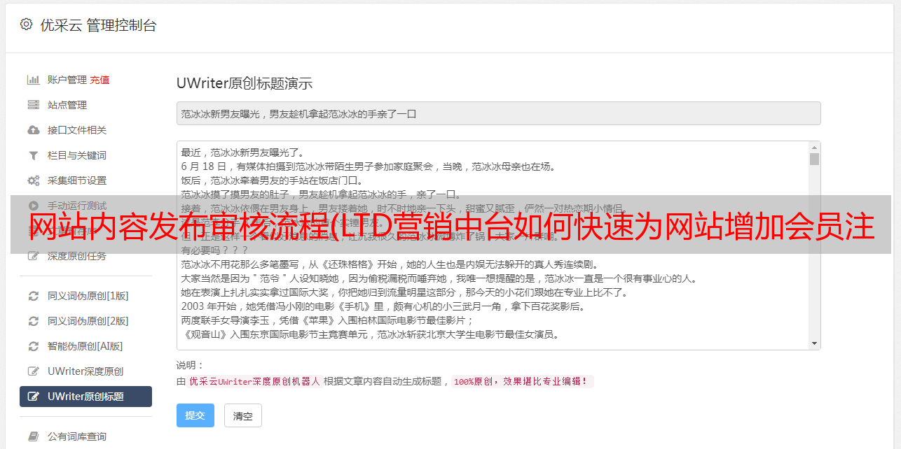 优采云 发布时间: 2021-11-06 03:17网站内容发布审核流程(LTD营销中台如何快速为网站增加会员注册审核功能?)