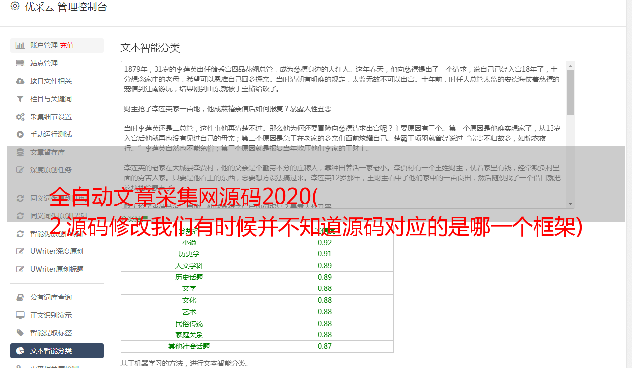 优采云 发布时间: 2021-11-06 11:02全自动文章采集网源码2020(