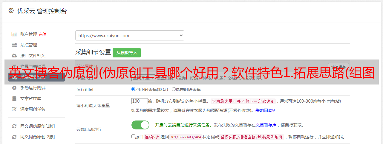 优采云 发布时间: 2021-11-07 05:16英文博客伪原创(伪原创工具哪个好用?软件特色1.拓展思路(组图))