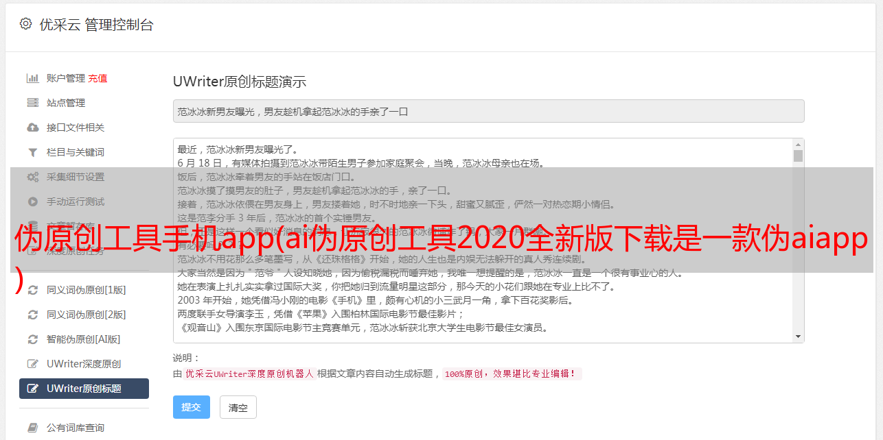 伪原创工具手机app(ai伪原创工具2020全新版下载是一款伪aiapp )