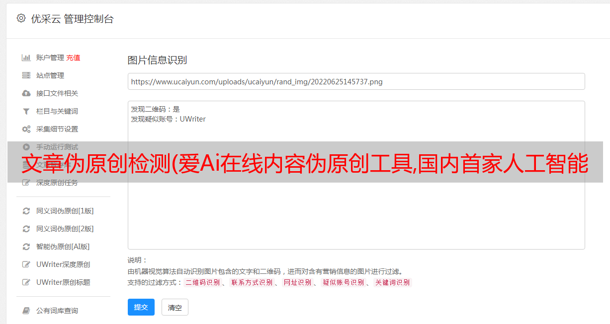 优采云 发布时间: 2021-11-07 15:09文章伪原创检测(爱Ai在线内容伪原创工具,国内首家人工智能+自然语言分析+大数据技术应用)