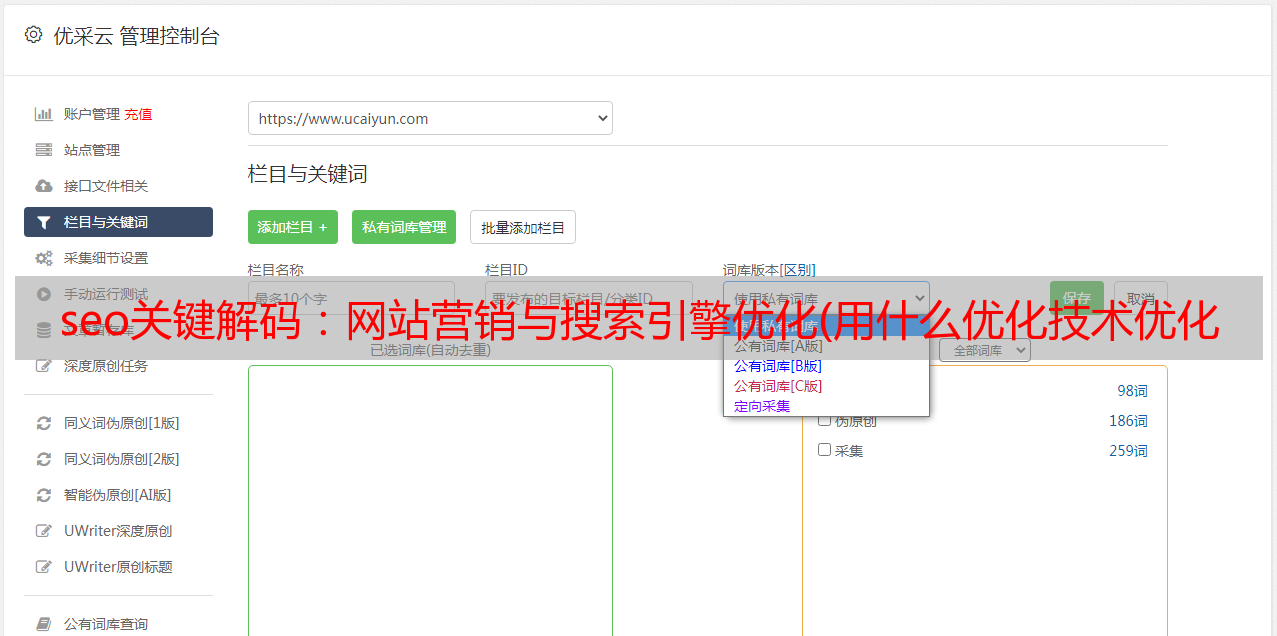 优采云 发布时间: 2021-11-07 18:17seo关键解码:网站营销与搜索引擎优化(用什么优化技术优化网站关键词对百度首页的排名!)