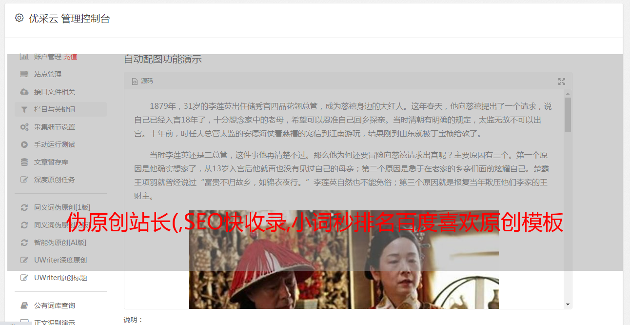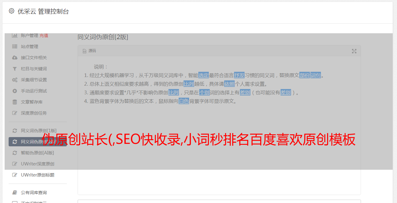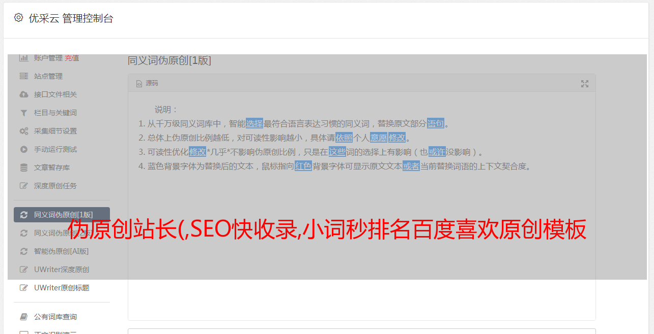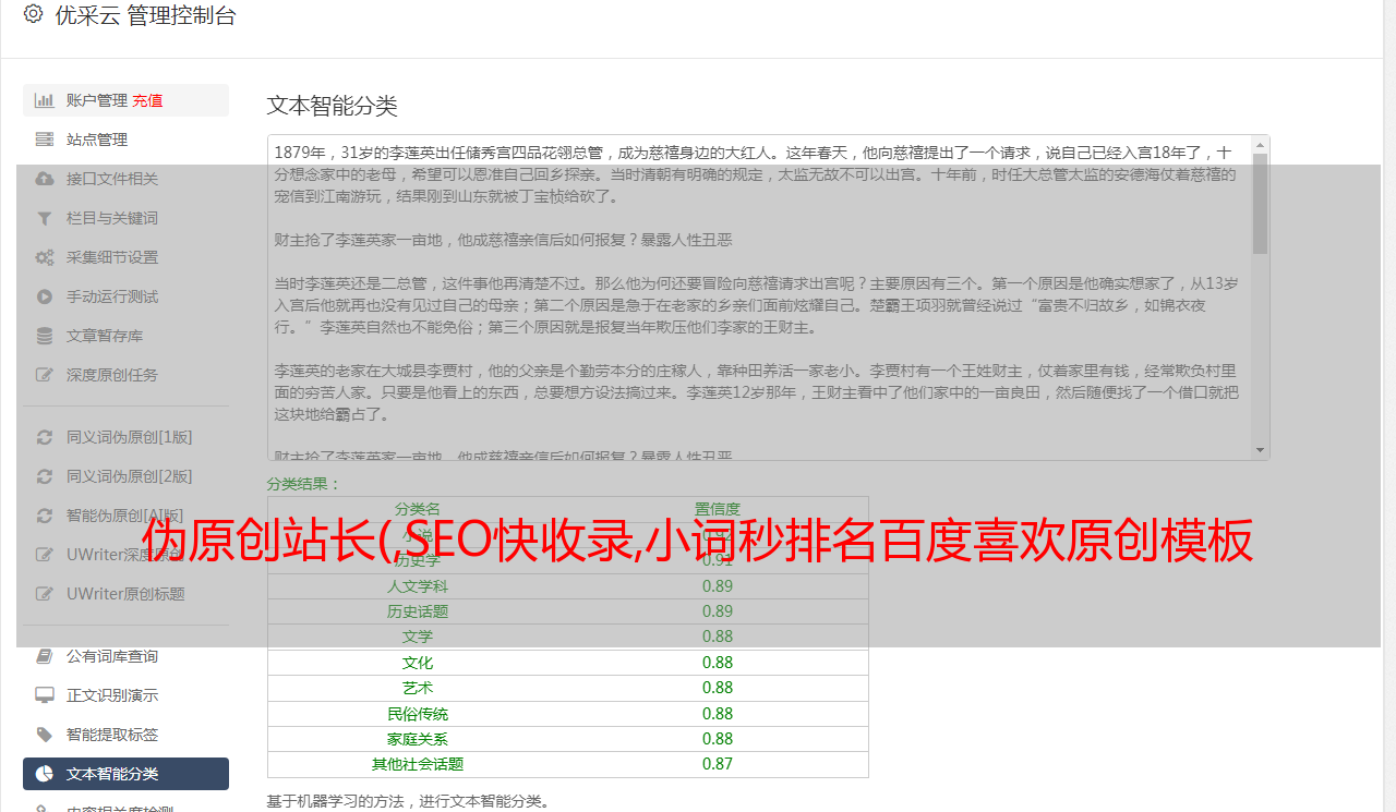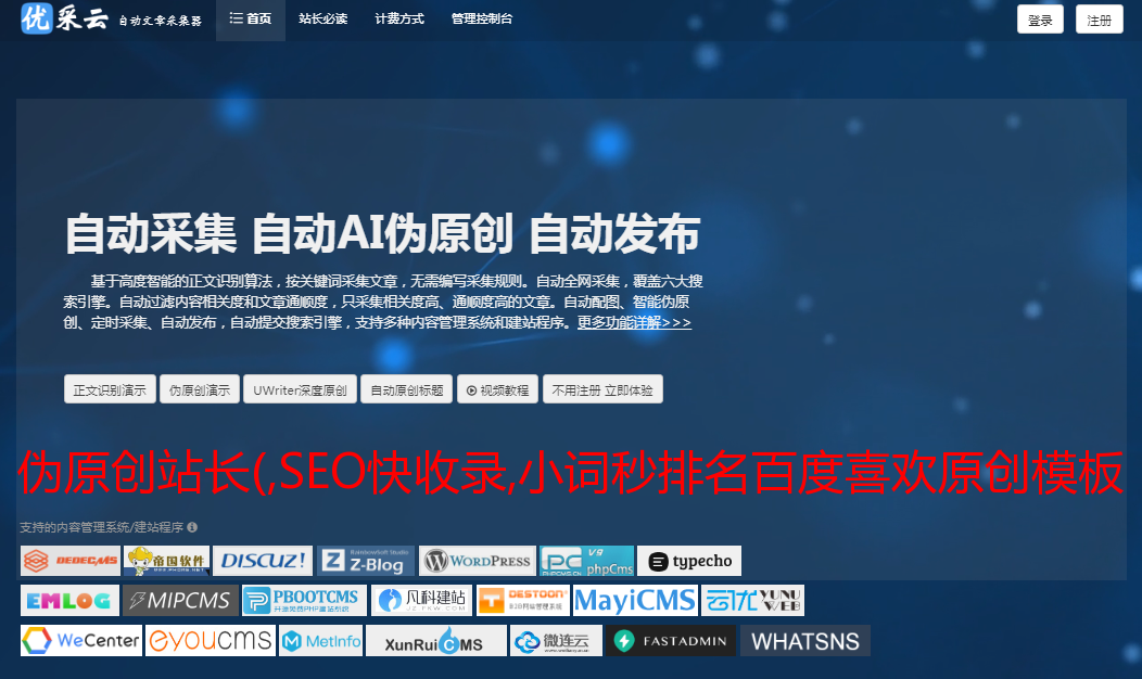 优采云 发布时间: 2021-11-07 21:11伪原创站长(,SEO快收录,小词秒排名百度喜欢原创模板