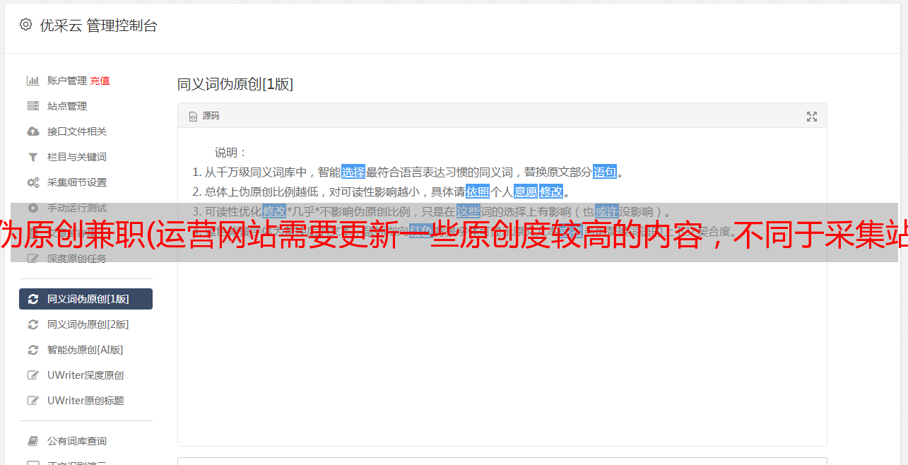 伪原创*敏*感*词*(运营网站需要更新一些原创度较高的内容,不同于采集站、站群的玩法 )