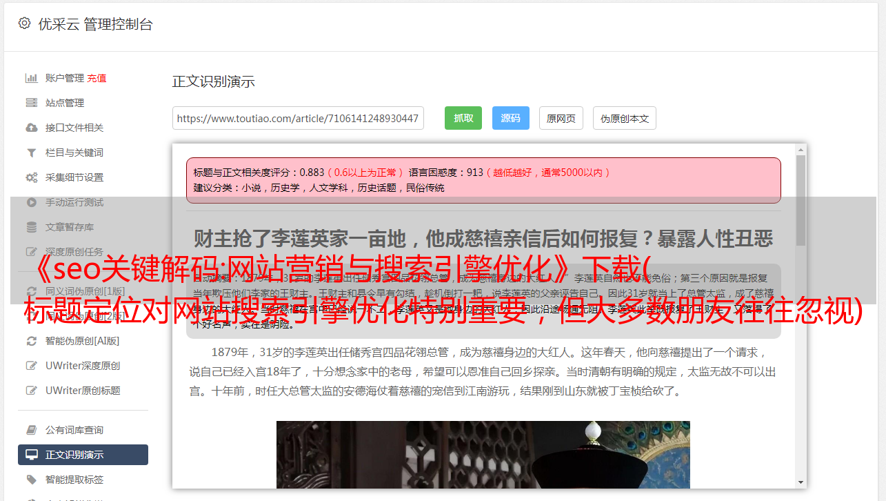 优采云 发布时间: 2021-11-09 05:06《seo关键解码:网站营销与搜索引擎优化》下载(