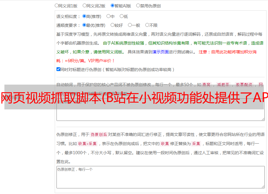 优采云 发布时间: 2021-11-09 08:14网页视频抓取脚本(B站在小视频功能处提供了API接口,(图))