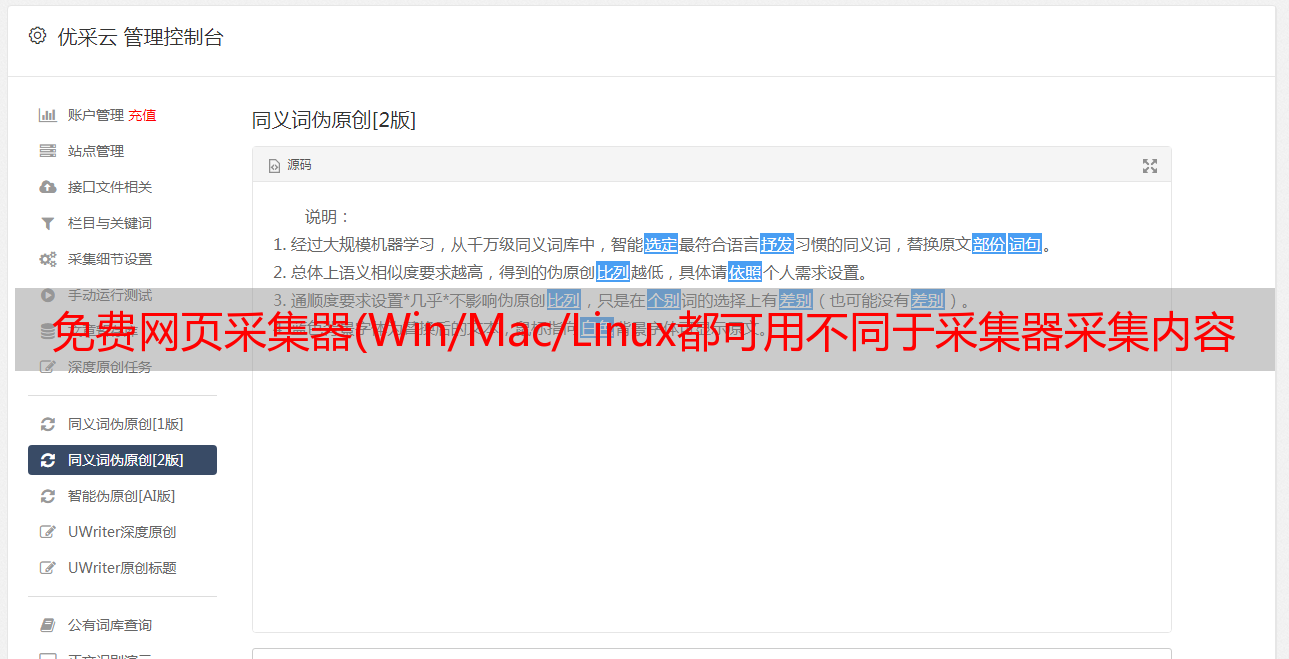优采云 发布时间: 2021-11-09 09:07免费网页采集器(Win/Mac/Linux都可用不同于采集器采集内容的使用说明)